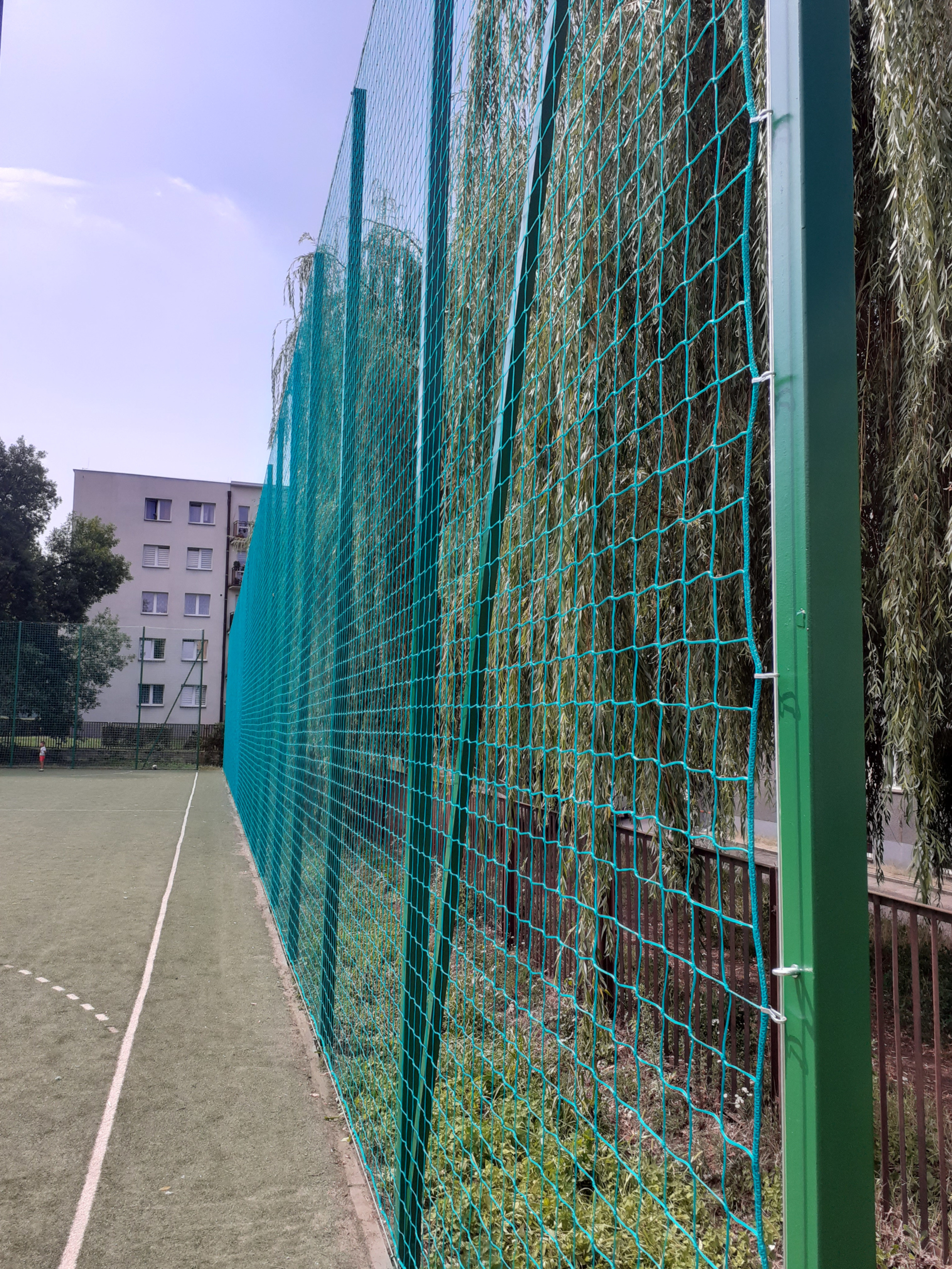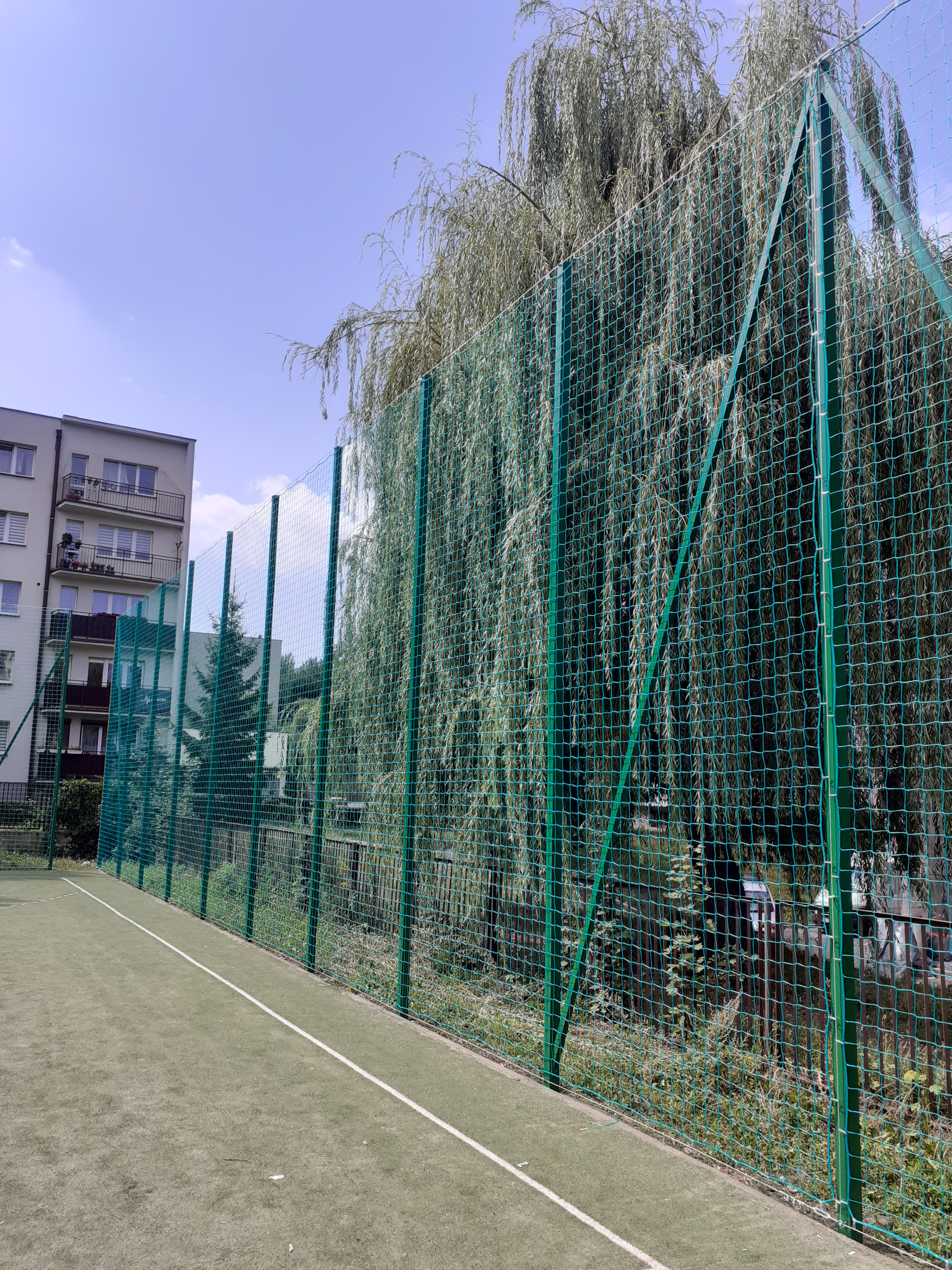 Kapitalny remont piłkochwytu z malowaniem słupów i wymianą siatki.